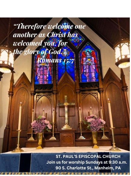 For over a century, St. Paul’s Episcopal Church in Manheim has been a community of faith where, in our diversity, we hold each person to be a child of God with unique gifts and talents. We seek to follow Christ, share His grace, and serve our community.
