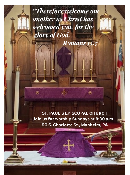 WE ARE THE CLOSEST EPISCOPAL CHURCH TO LITITZ & MANHEIM.